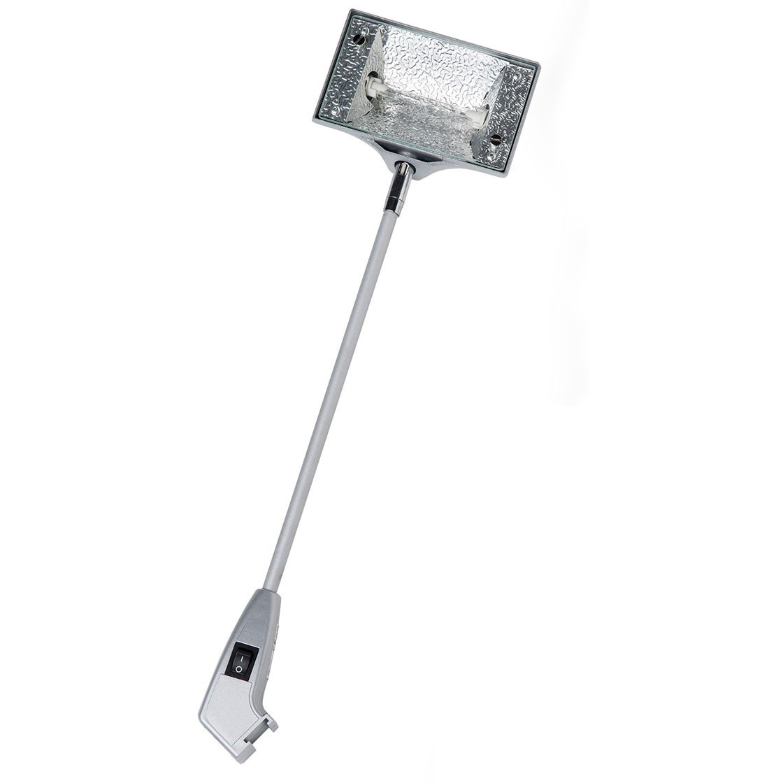 Spot halogène pour stand parapluie, d'une puissance de 150 W, équipé d'un interrupteur de sécurité et câble d'alimentation 220 V avec prise française. Le spot est livré avec une housse de protection en nylon et est intégrable dans un logement spécifique du container Podium Box XL.