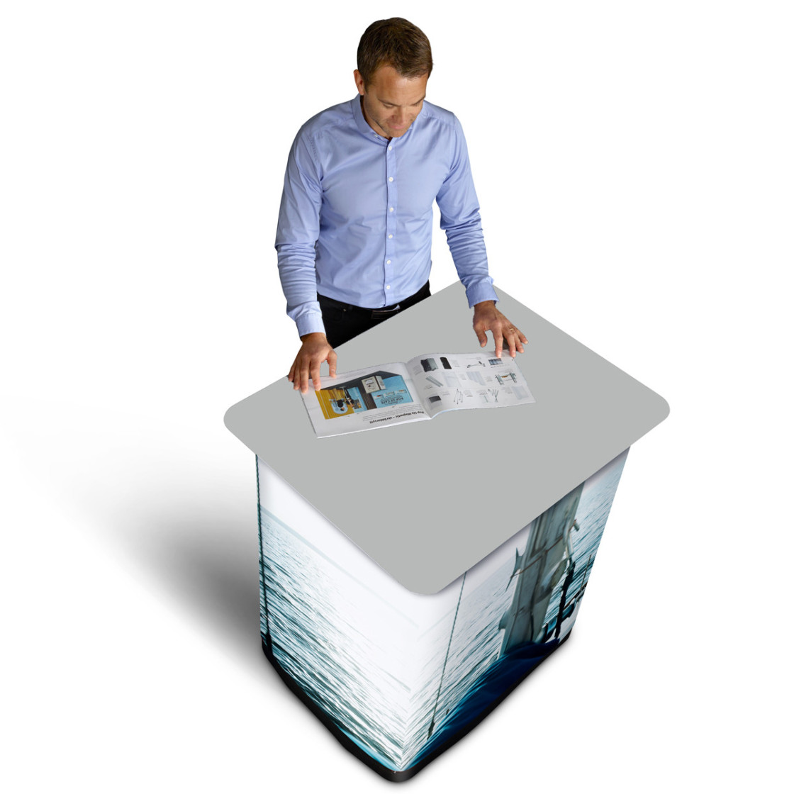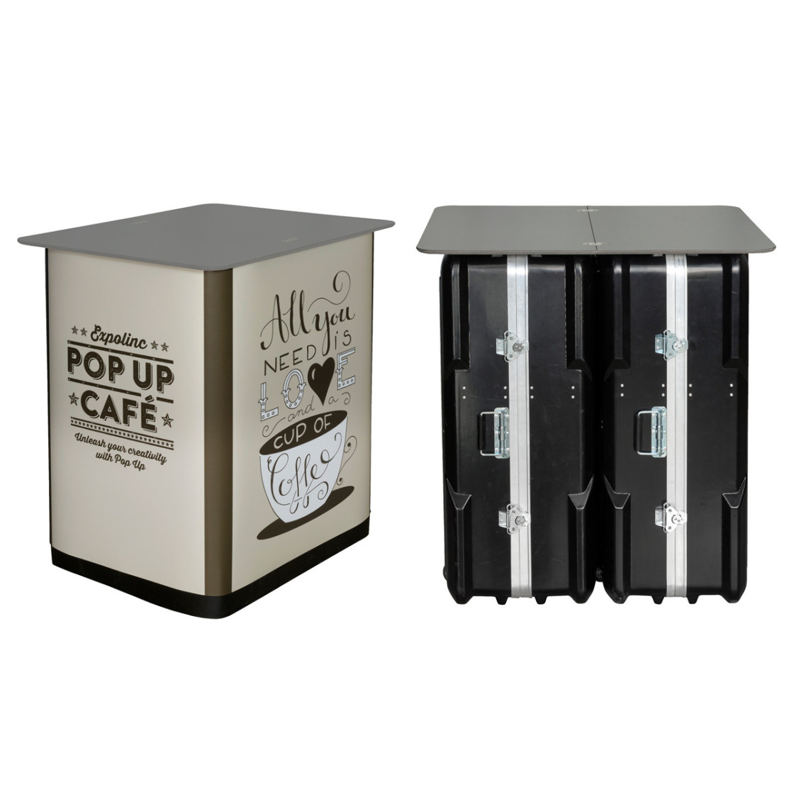 La banque d'accueil Case & Counter est une mallette de transport spacieuse qui se transforme en une minute en comptoir stylisé et stable. La qualité de fabrication de ce produit est exemplaire et en fait un must dans notre gamme. Destinée aux clients pour qui la qualité est une priorité avant tout.