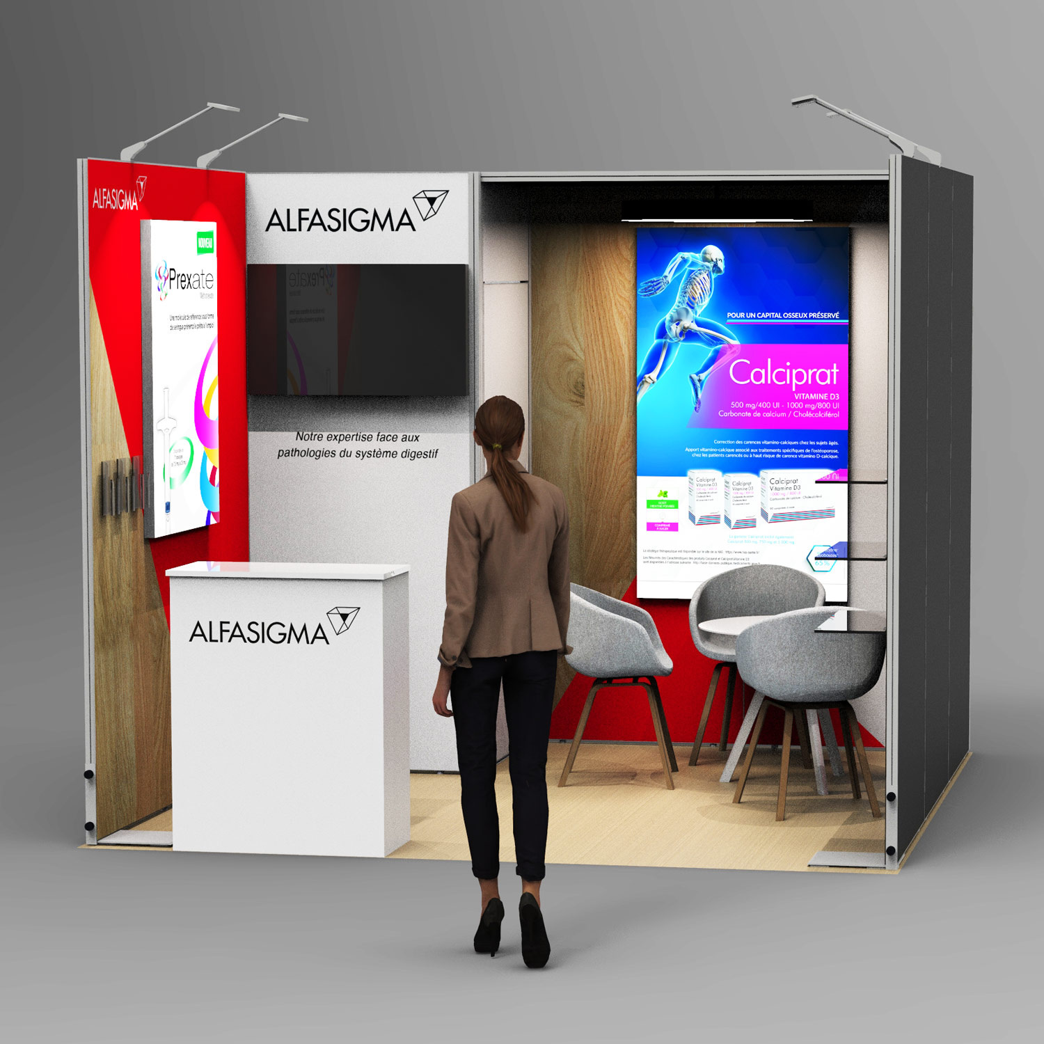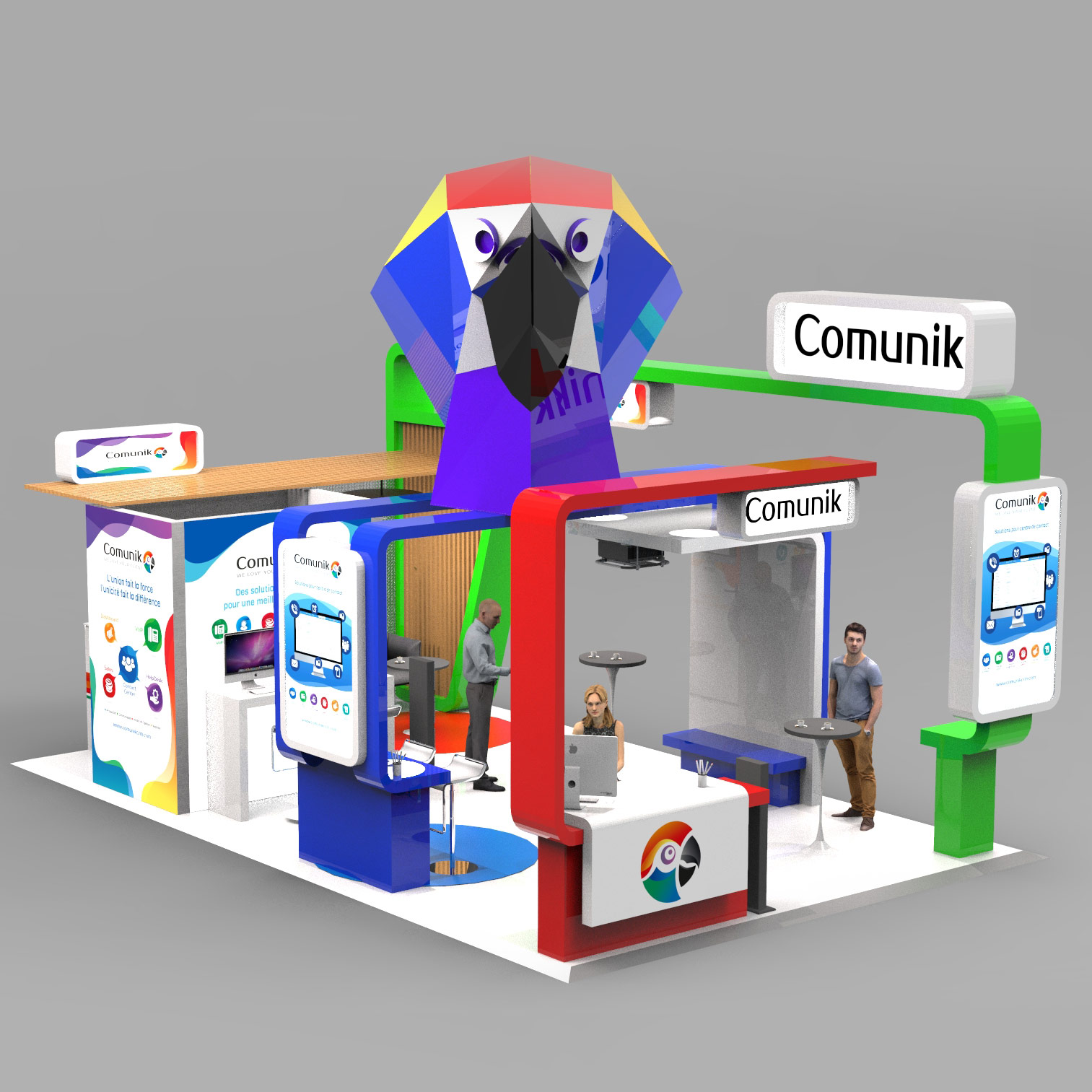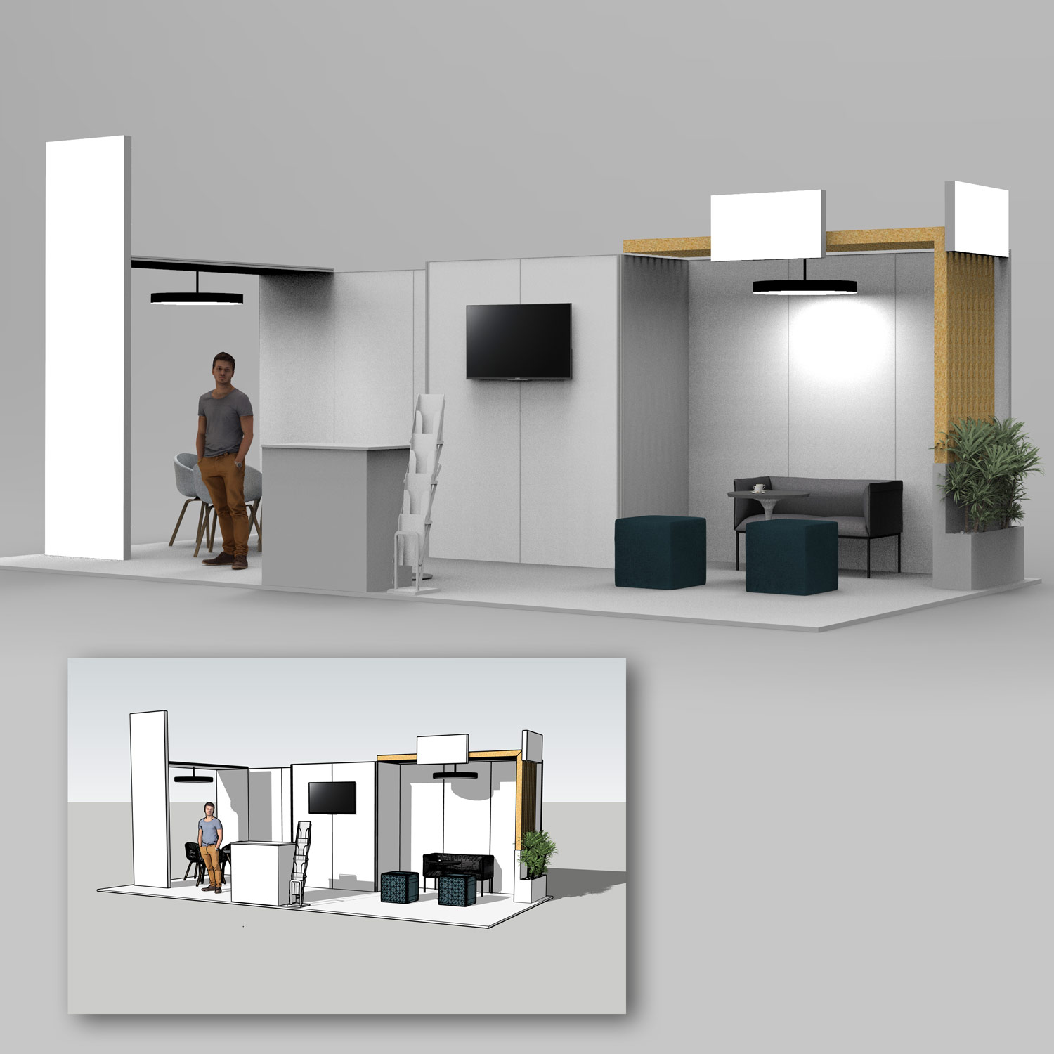 Visualiser votre projet avant sa construction et son déploiement est une étape que vous devez valider avec notre bureau d'étude qui aura la charge de modéliser votre projet en vous proposant des vues 3D. Que ce soit pour l'implantation d'un stand parapluie sur une surface de 9m² ou d'un stand traditionnel sur une surface plus importante, nos équipes commerciales et techniques vous accompagnent tout au long de votre projet pour que votre événement soit une réussite.