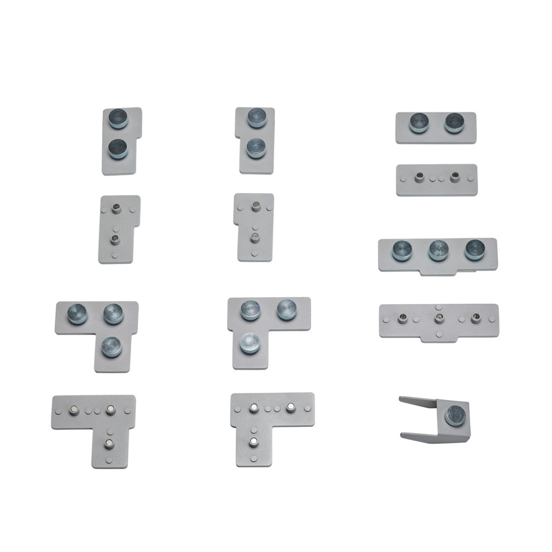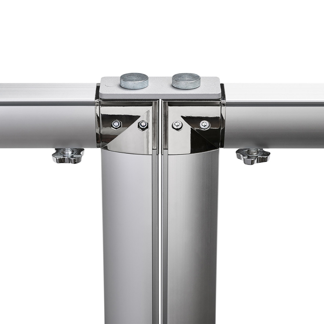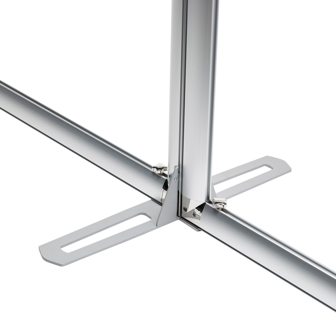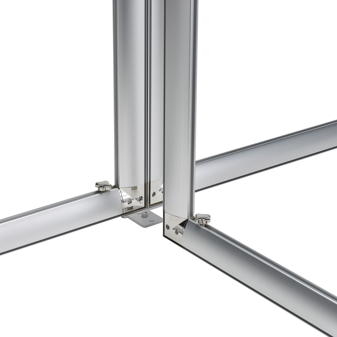 L'assemblage du stand est réalisé sans outils. Tous les profilés sont identifiés et intègrent leur propre système de verrouillage ce qui évite les connecteurs séparés et limite les risques d'erreur ou de perte.
