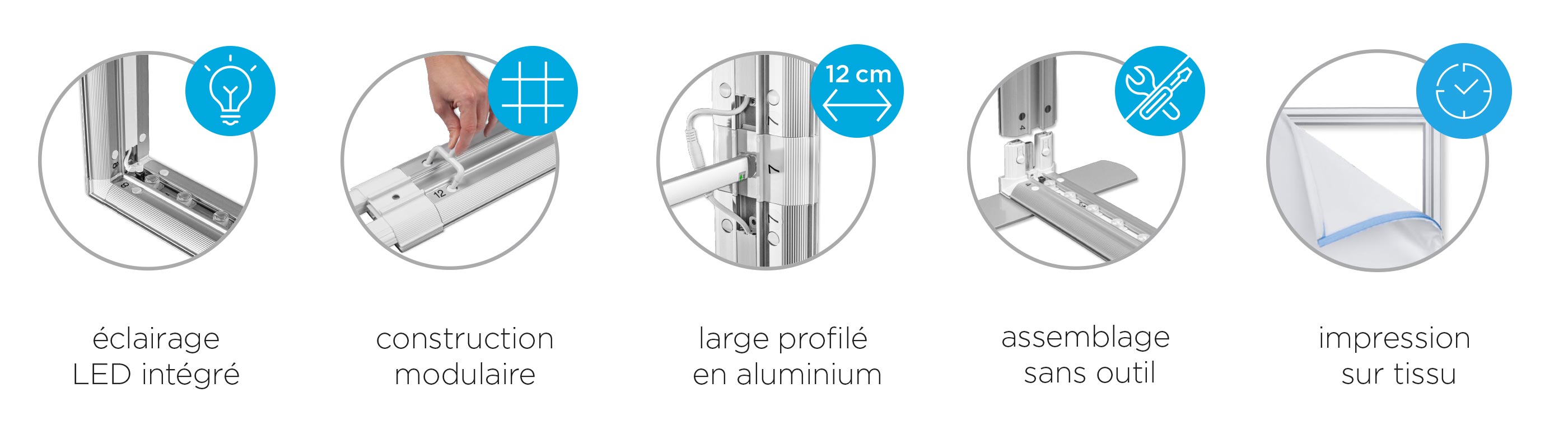 Faites briller votre marque avec notre kit de stand d’exposition lumineux, spécialement conçu pour maximiser l'impact visuel sur une surface de 9 m² (3x3 m).