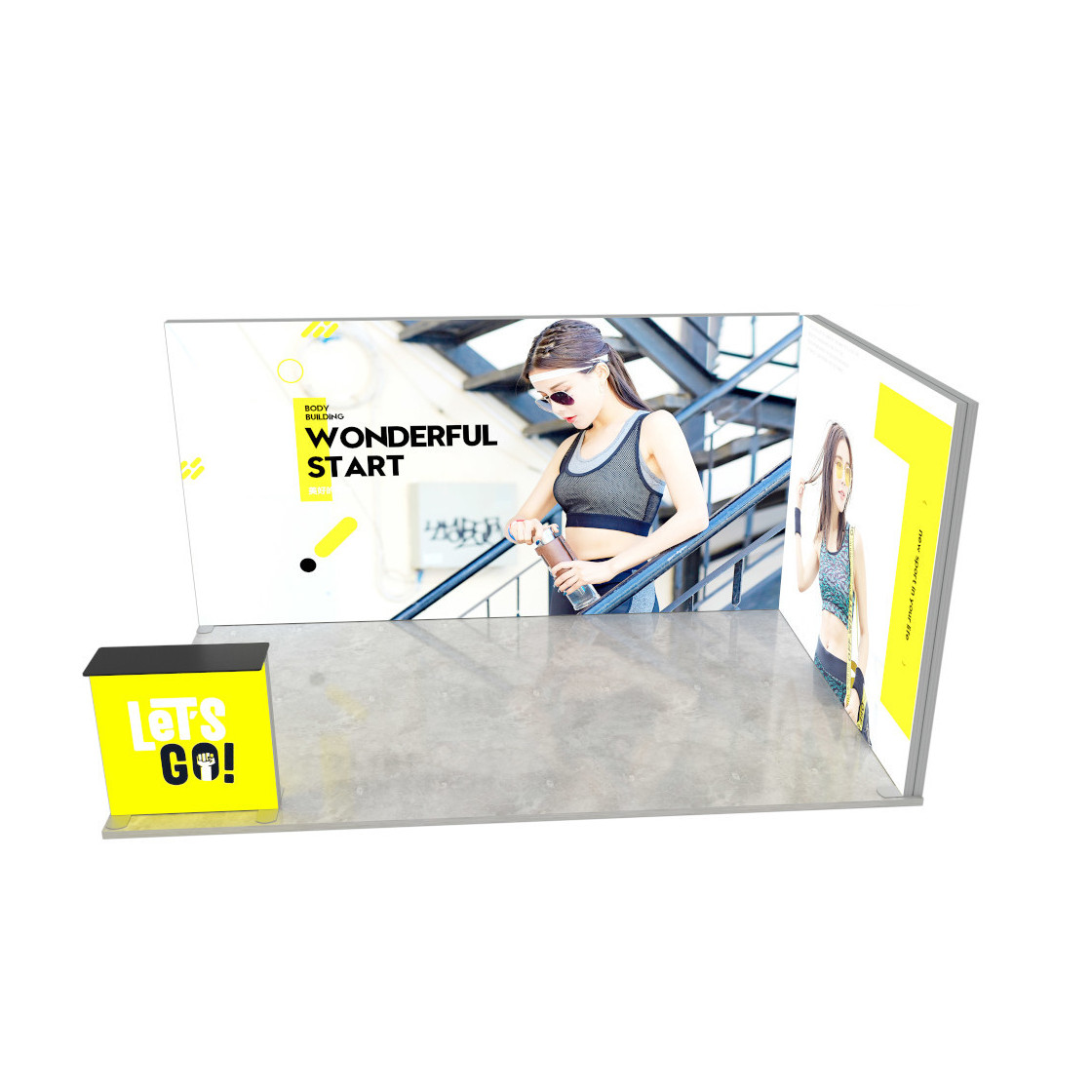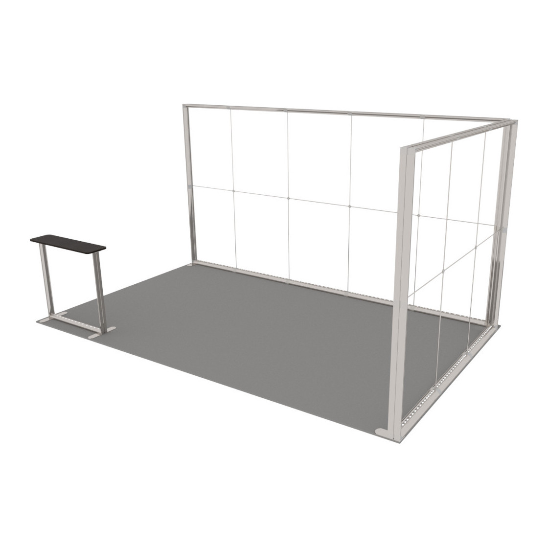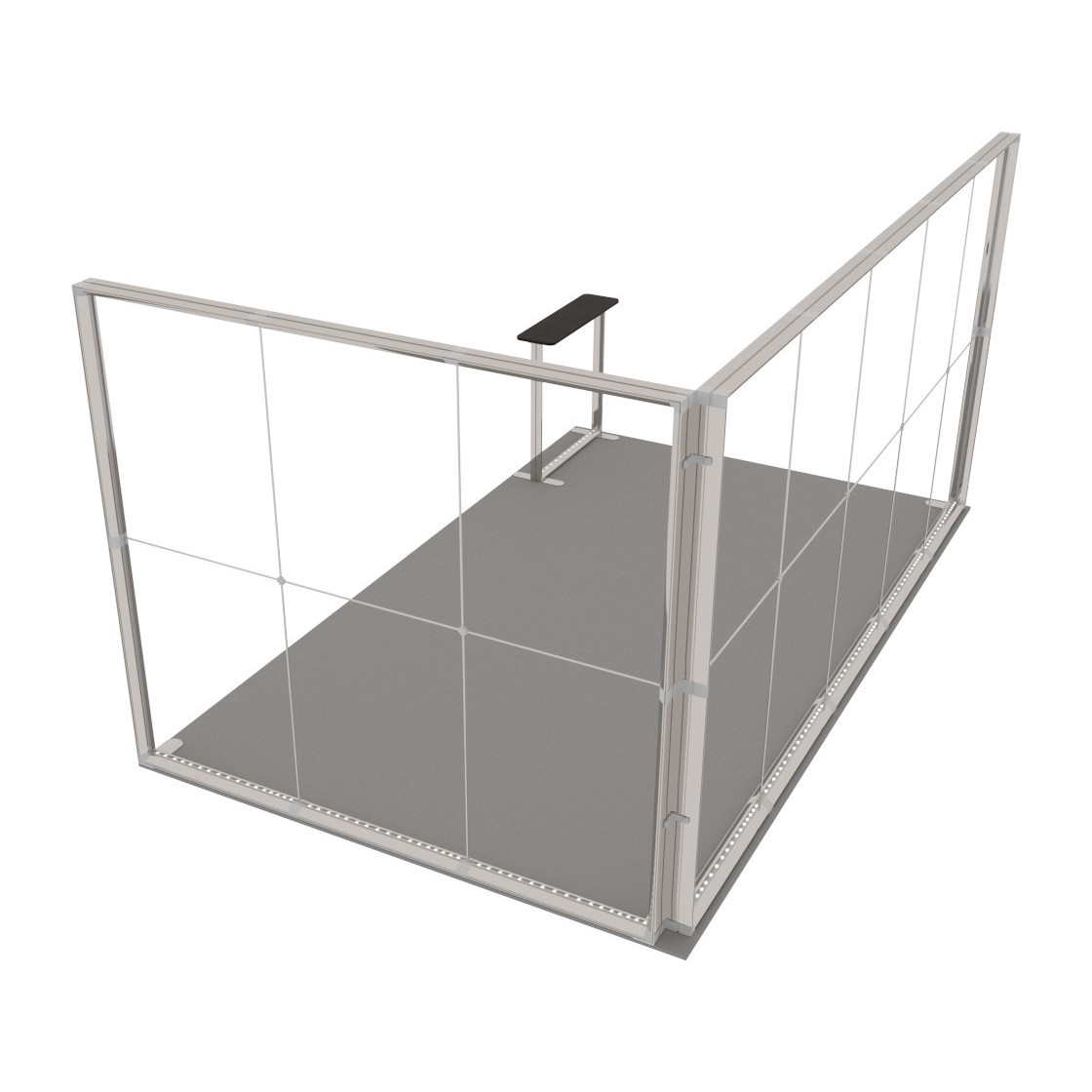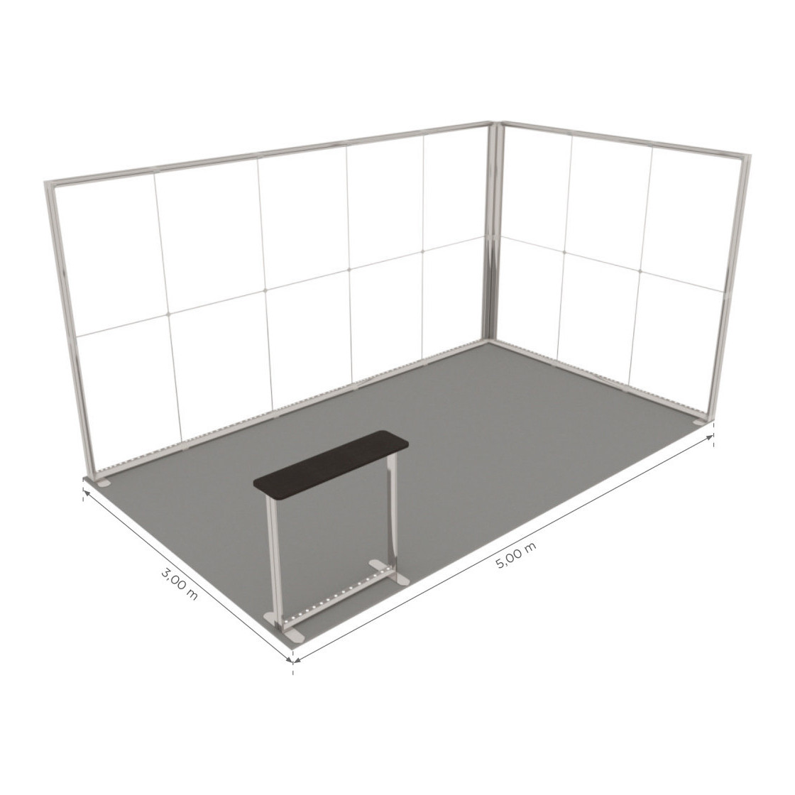 Faites de vos événements un succès avec notre stand d’exposition lumineux en angle, spécialement conçu pour une surface de 15 m² (5x3 m).